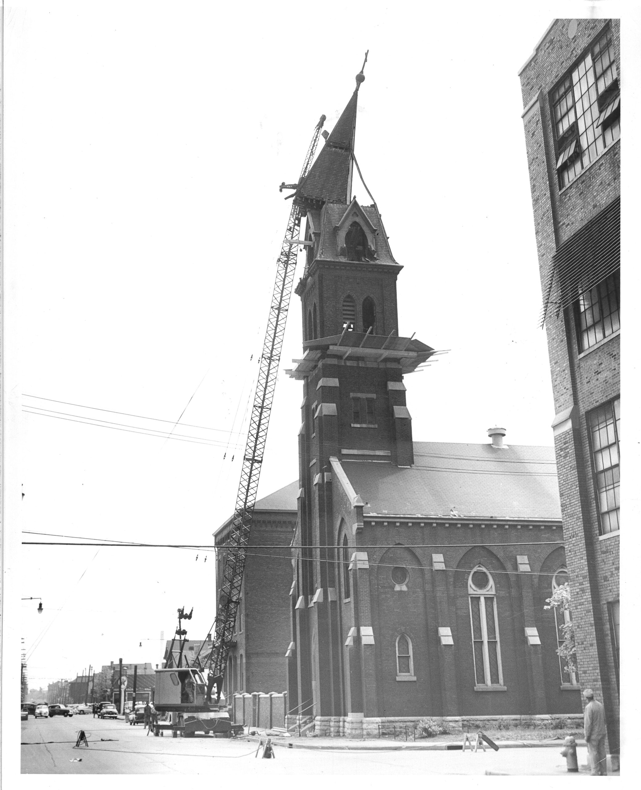 The parish rectory became the “Catholic Social Services” agency office of the archdiocese. The old school was torn down and the steeple on the church was removed. Here are some less than clear clippings, photocopied many times over that show this activity.